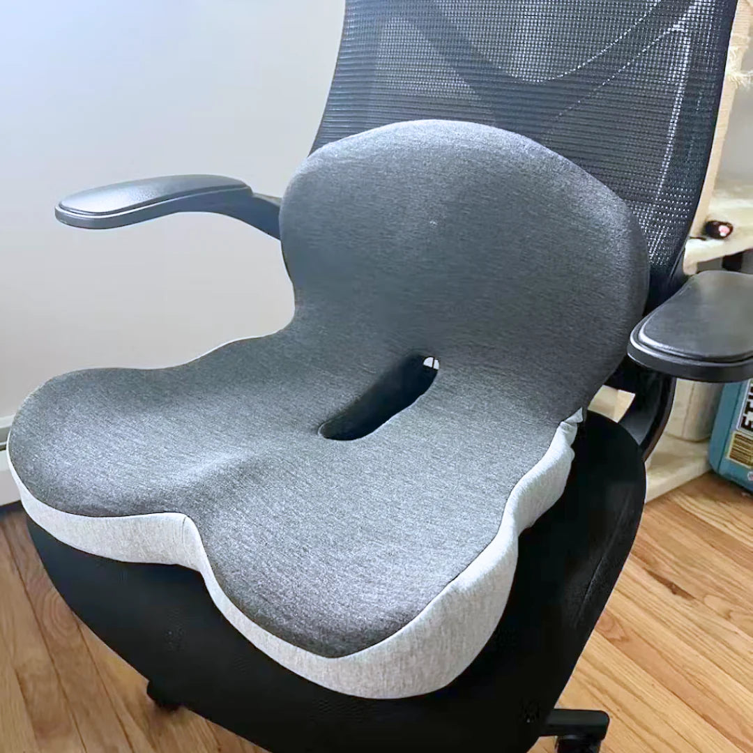 לכרית יש חלל גדול במרכז שמרחיק לחץ מעצם הזנב, כך שאין מגע נקודתי שמכאיב בכל ישיבה.